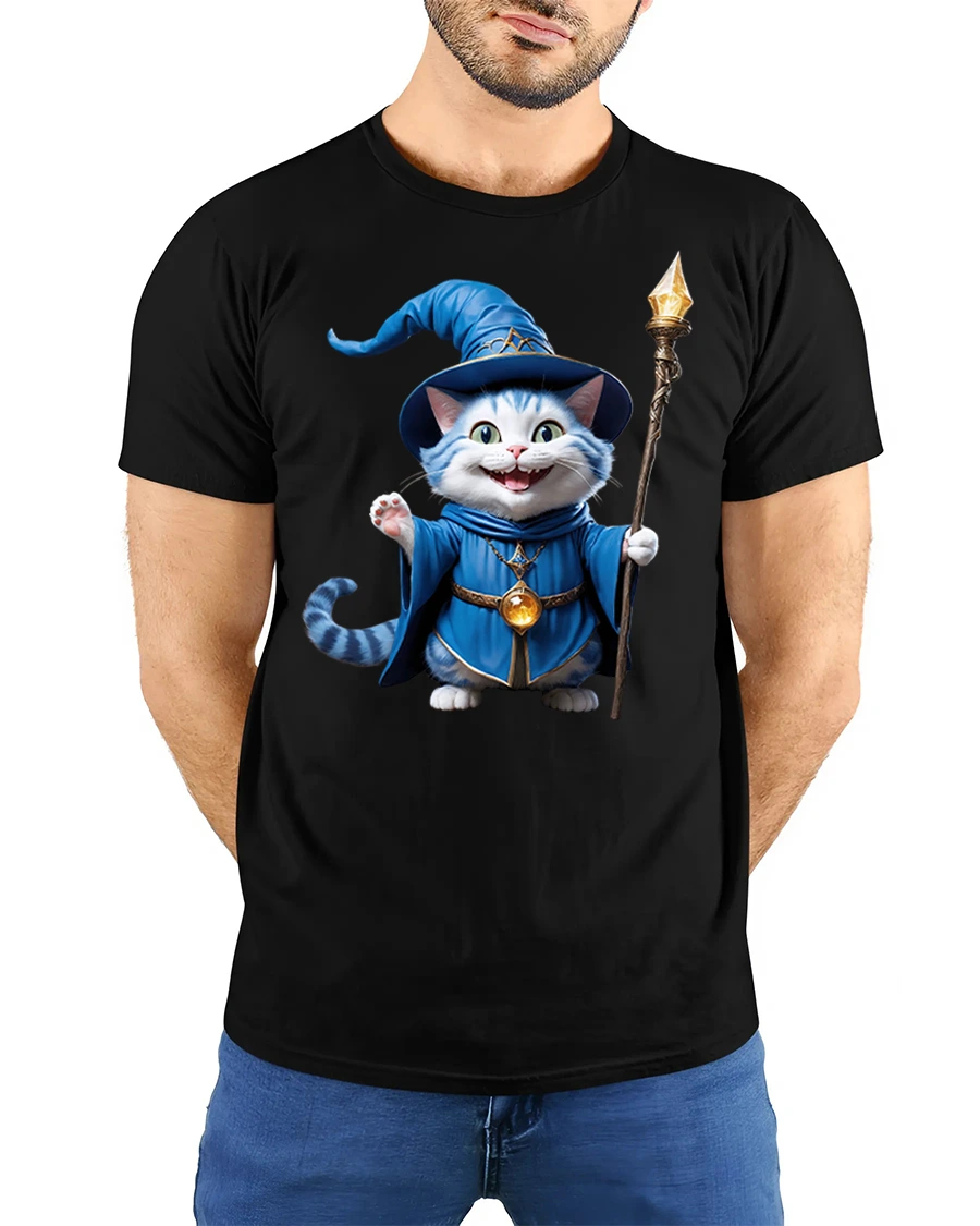 Ideal as a gift for cat enthusiasts, fantasy lovers, or anyone who enjoys playful fashion, this tee celebrates imagination and fun. Wear it proudly to show off your love for magical adventures and furry companions. With its unique design, this wizard cat tee is sure to become one of your favorite go-to shirts.