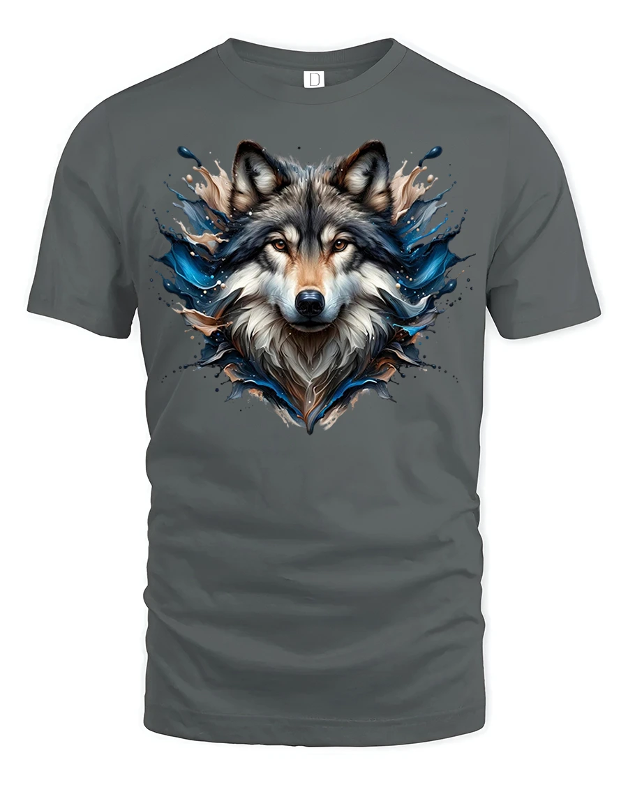 Show off your wild side with the Wolf Splash Artwork Bold Graphic T-Shirt, a stunning piece that blends fierce design with bold artistic flair. Featuring a detailed wolf face surrounded by dynamic splash effects, this tee captures the untamed spirit of strength, loyalty, and courage.